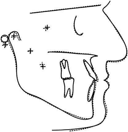consequent to the association of the procedures described above. Cephalometrically, from posttreatment to the 2-year follow-up, there were slight labial tipping and protrusion of the maxillary incisors and mandibular incisors (Fig 11, Table). Because the mandibular incisors were lingually tipped and retruded during treatment, possibly this was consequent to a small relapse tendency of the mandibular incisors to return to their original position.