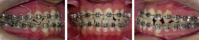 Fig 4. Intraoral progress photographs showing treatment with asymmetric Class III elastics (the