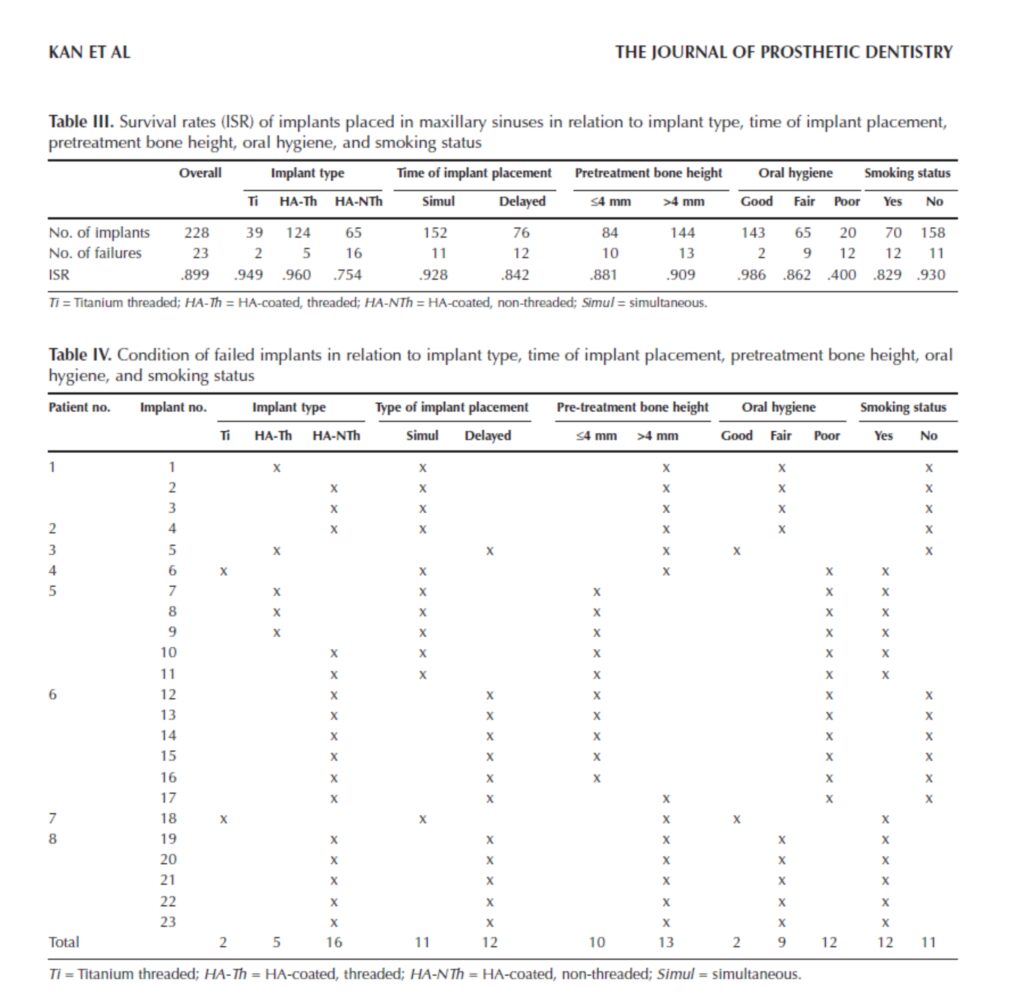32. Kan JY, Rungcharassaeng K, Lozada JL, Goodacre CJ. Effects of smoking on implant success in grafted maxillary sinuses. J Prosthet Dent 1999;82:307-11.