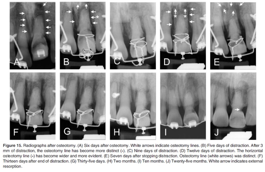 5. Ohkubo K, Susami T, Mori Y, et al. Treatment of ankylosed maxillary central incisors by single-tooth dento-osseous osteotomy and alveolar bone distraction. Oral Surg Oral Med Oral Pathol Oral Radiol Endod. 2011;111:561–567.